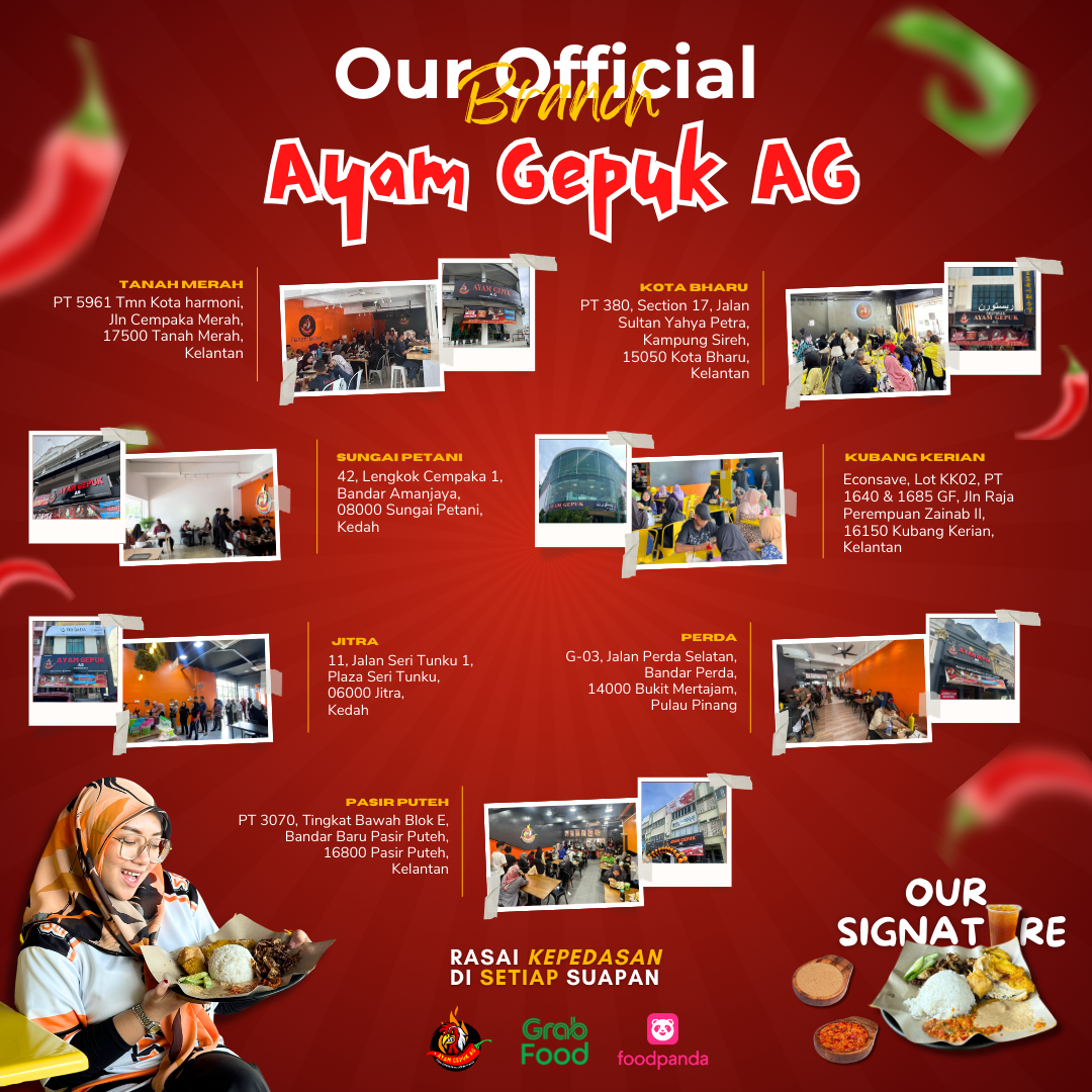 This “Sambal Giling” is a hybrid of cashew “giling”, chillies, chicken oil and a range of other secret ingredients. Each serving of the signature sambal is manually “giling” by our well-trained staff every day. Our killer products are our special Ayam Gepuk AG deep-fried cabbage and the hybrid “Sambal Gilling”.